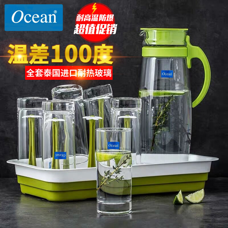 家用耐高温冷水壶大容量冰箱玻璃凉水壶冷泡壶茶壶凉水杯装 水套装