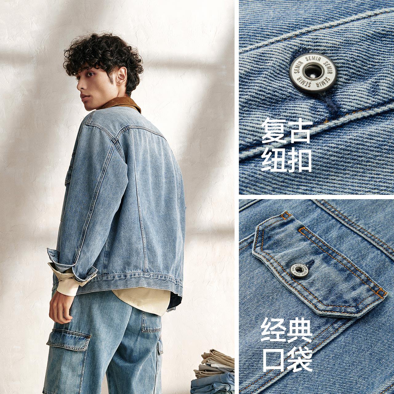 复古底特律美式 时尚 水洗牛仔外套宽松潮流 森马夹克男春新款 森柔