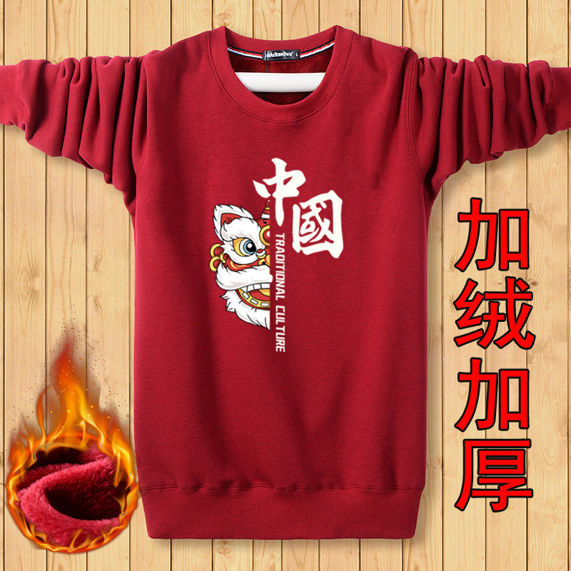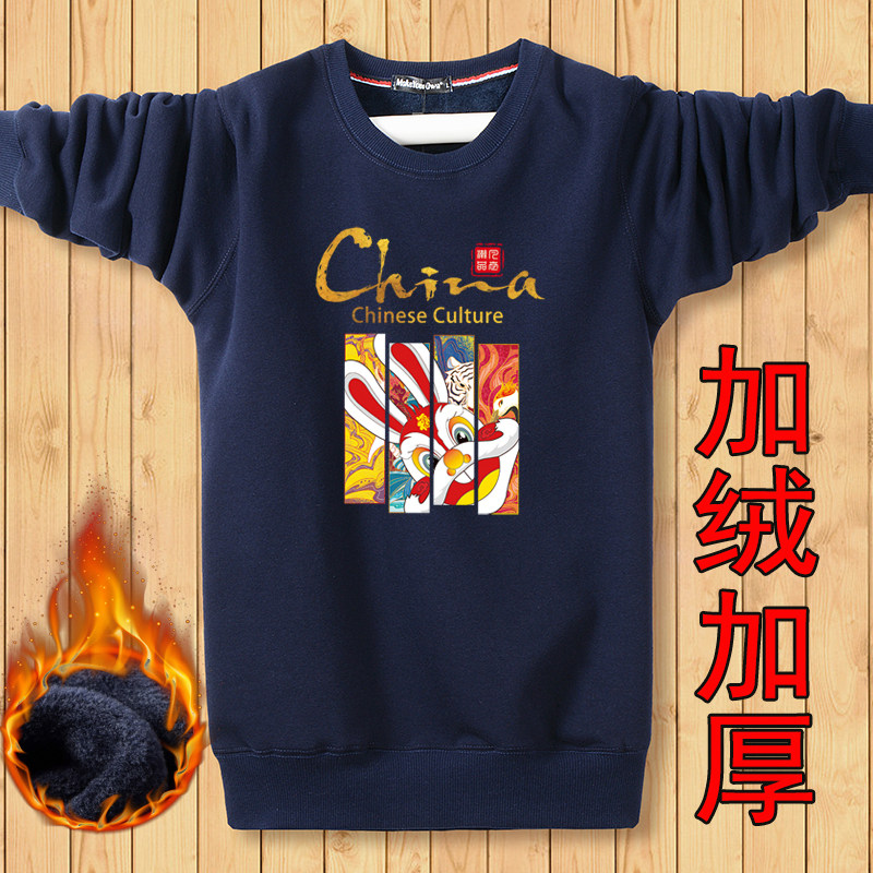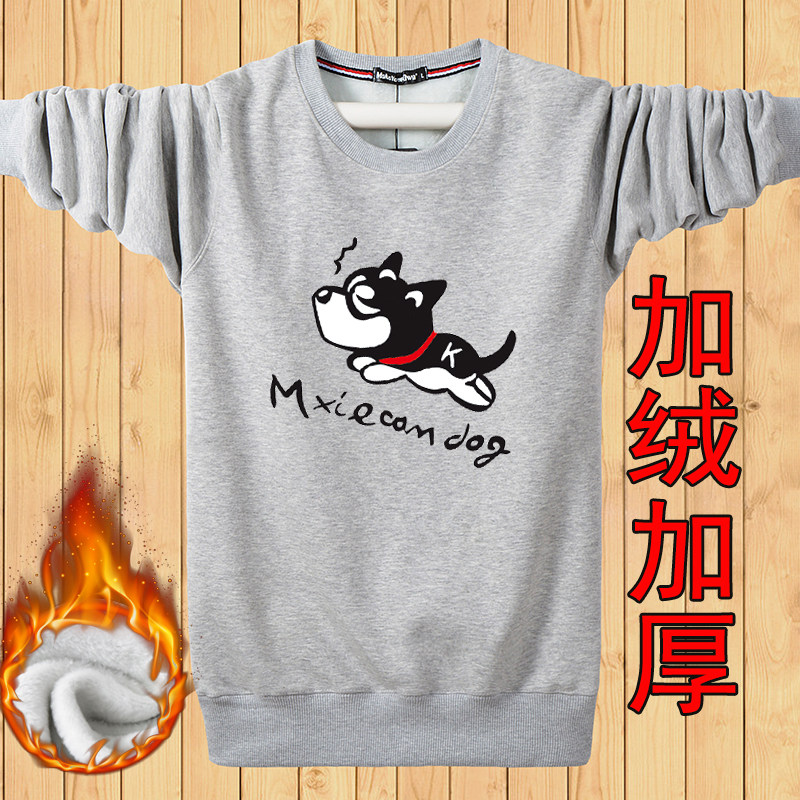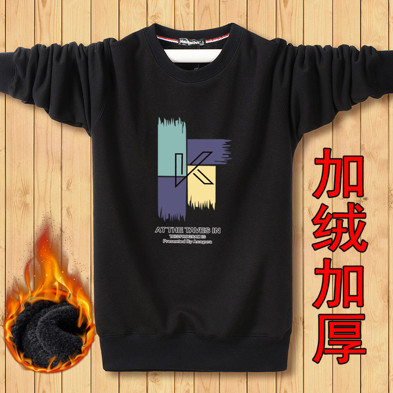 外套韩版 秋冬季 保暖长袖 加绒加厚卫衣男学生冬季 潮流衣服 圆领大码