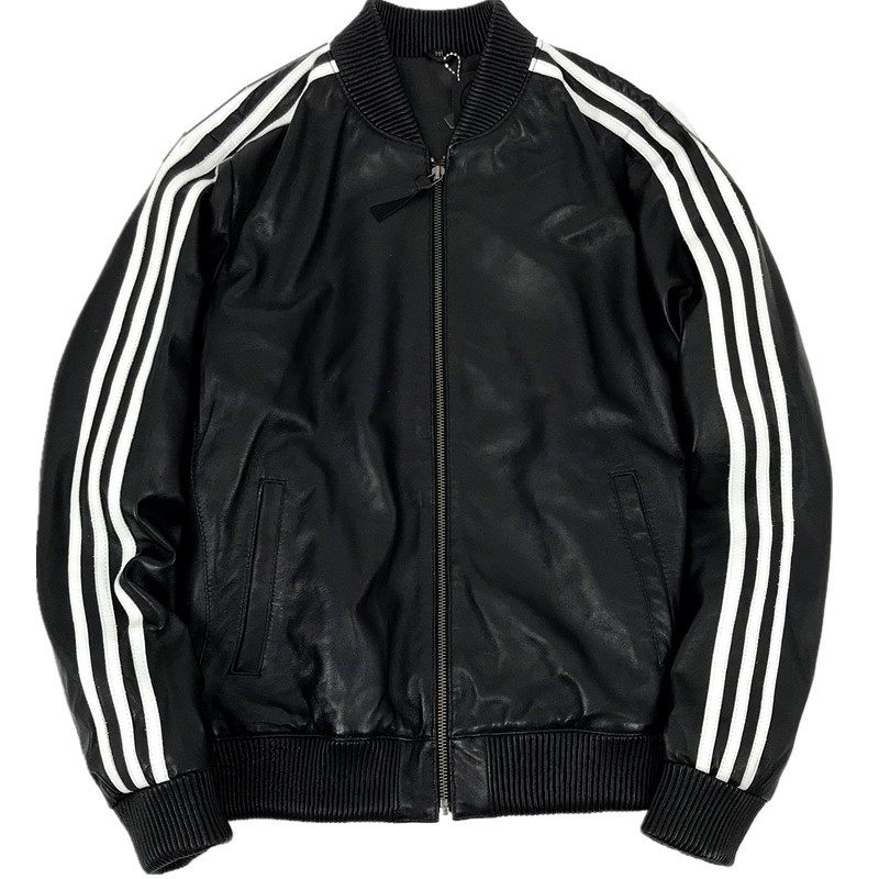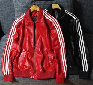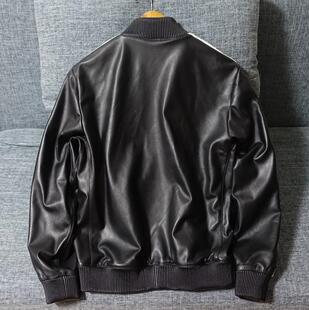 三条杠青年青春修身 休闲活力绵羊皮日产拉链螺纹男真皮皮衣