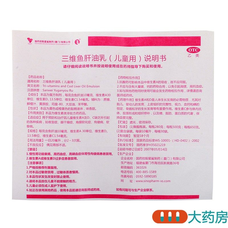 星鲨三维鱼肝油500g预防治疗儿童维生素ADC引起 疾病如夜盲症