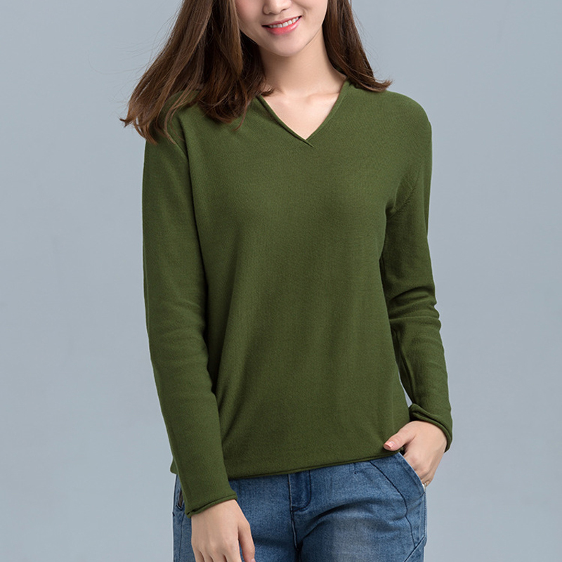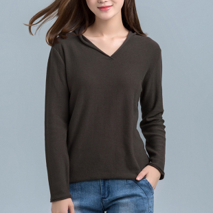 长袖 女装 休闲宽松版 纯棉毛衣套头针织衫 2020春秋新款 打底衫 大码