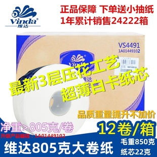 维达商用大盘纸大卷纸厕所卫生擦手纸酒店纸巾3层实惠装 整箱厕纸
