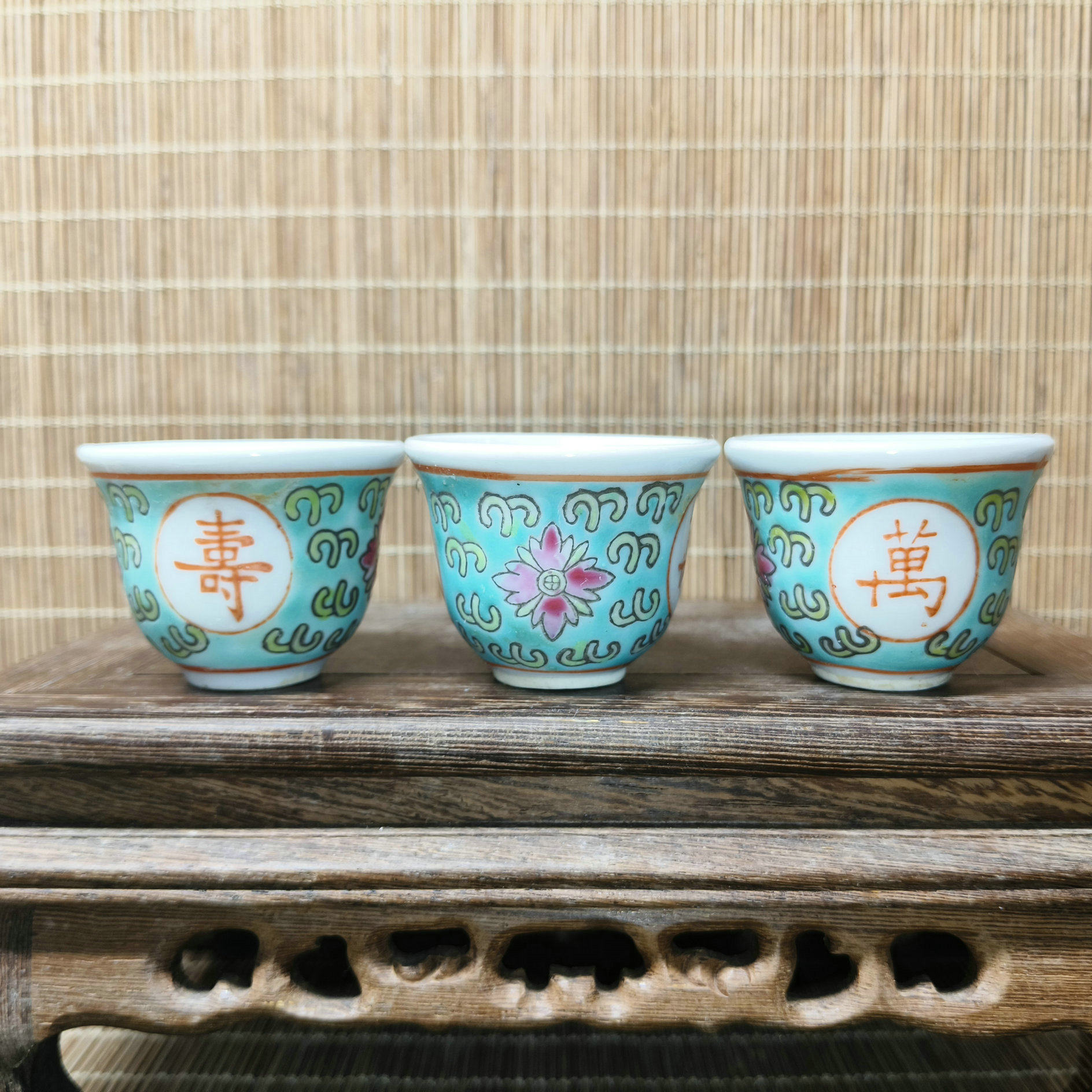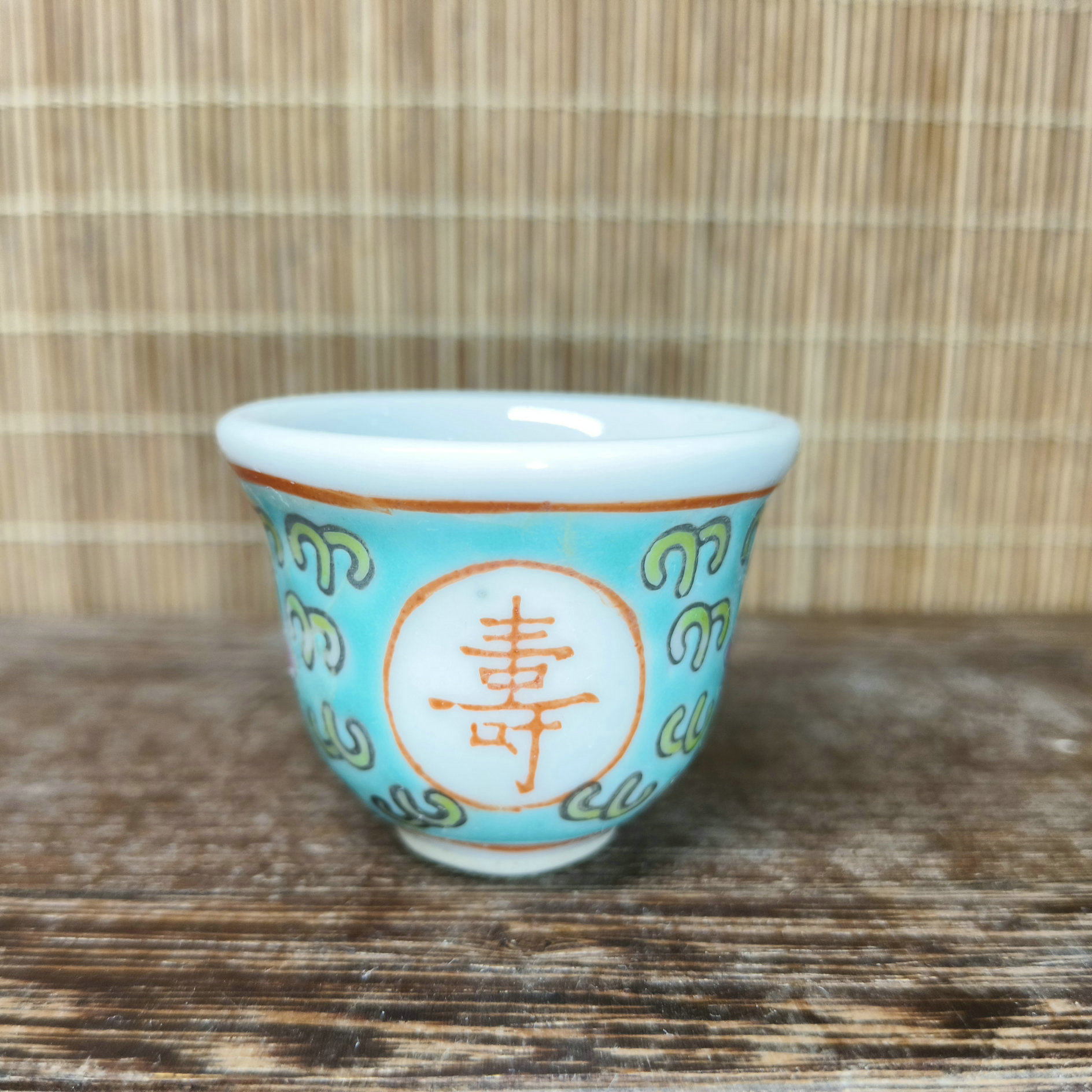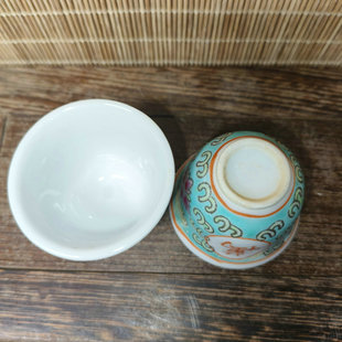 包老景德镇567老厂瓷 原矿料手工粉彩绿万寿石榴令盅酒杯功夫茶杯