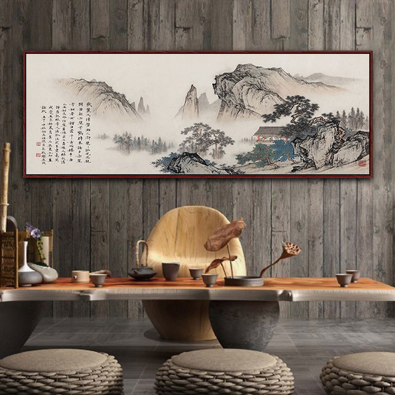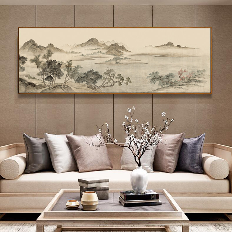 新中式 饰画客厅风水靠山国画山水水墨挂画大尺寸壁画 沙发背景墙装
