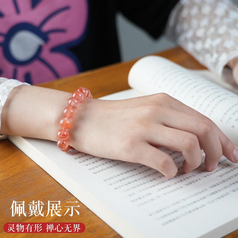 朱砂手串女男帝王砂东海水晶玛瑙翡翠玉石散珠子红手镯紫金砂手链