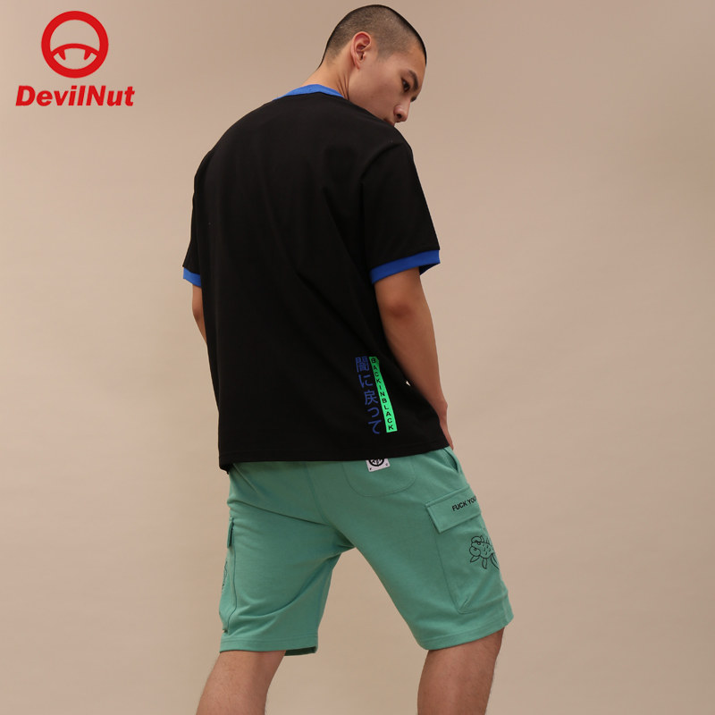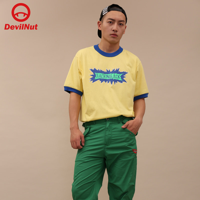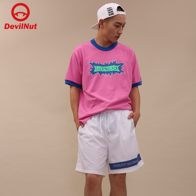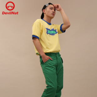 夏季 潮牌 男女情侣撞色LOGO罗文短袖 T恤 SET DEVIL BIB NUT恶魔