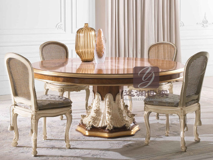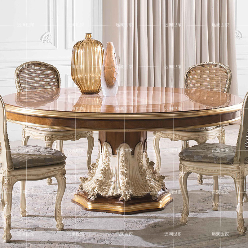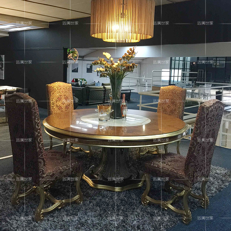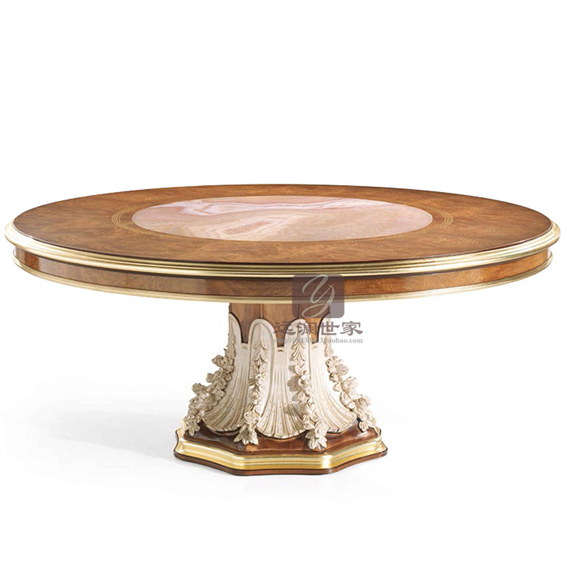 馨佰利中古风实木岩板餐桌家用小户型可变圆桌复古凯旋门伸缩饭桌