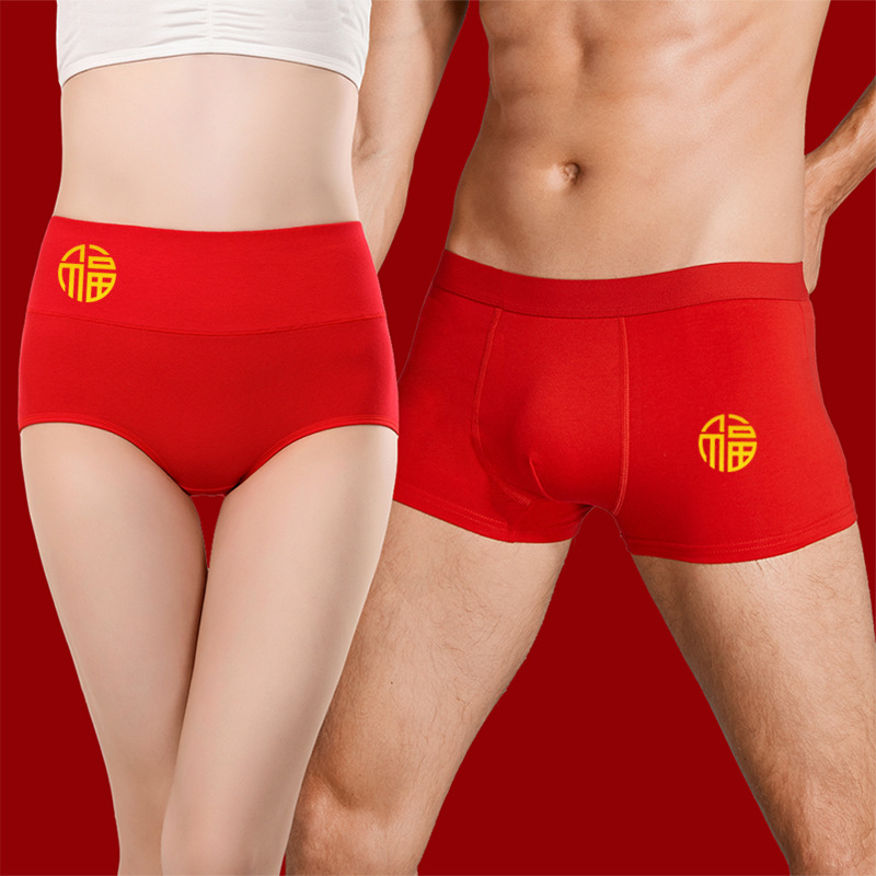 男士 全棉新婚底裤 纯棉三角裤 大红三角加大码 全棉中腰男内裤 六条装