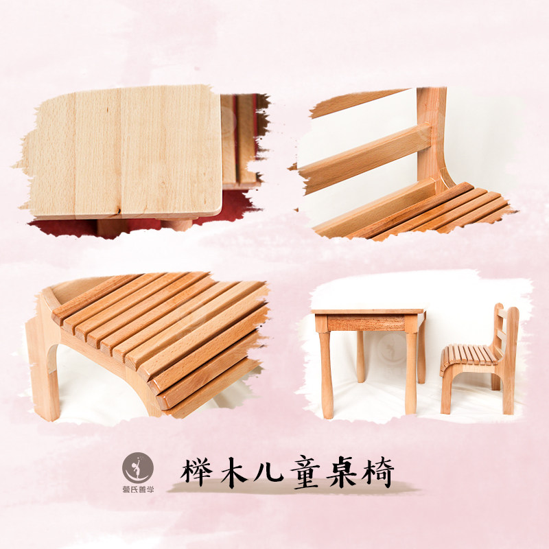 善学实木儿童桌椅套装 蒙氏玩具1一2岁工作桌板条椅幼儿园带靠背