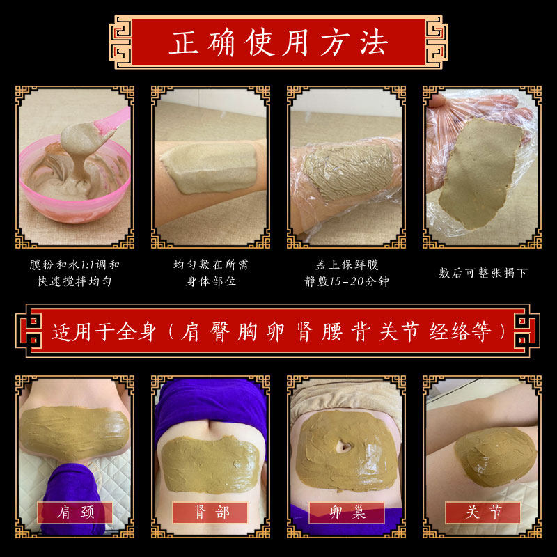 美容院艾草粉发热膜粉能量膜粉热敷肩颈卵巢胸膜臀膜全身用软膜粉
