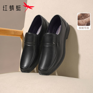 皮鞋 子真皮软底爸爸鞋 一脚蹬大码 商务休闲中老年鞋 男鞋 红蜻蜓男士