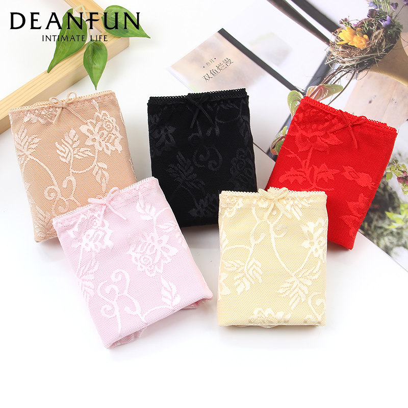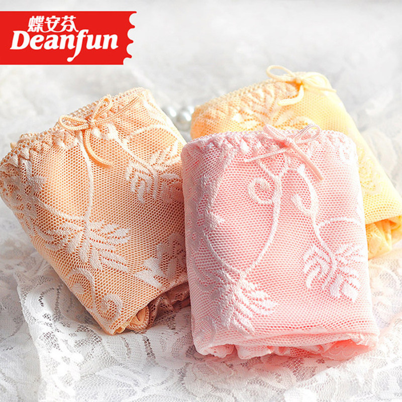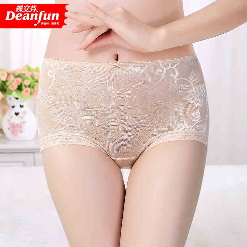 4条超市同款 内裤 2187 中腰透气网纱蕾丝弹力平角裤 蝶安芬女士内裤