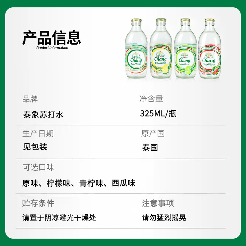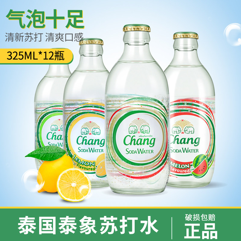 泰国进口泰象苏打水325ml 24瓶整箱气泡水玻璃瓶Chang牌碳酸饮料