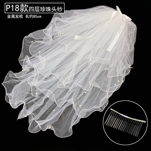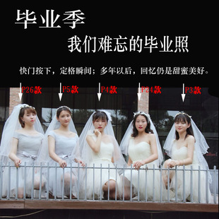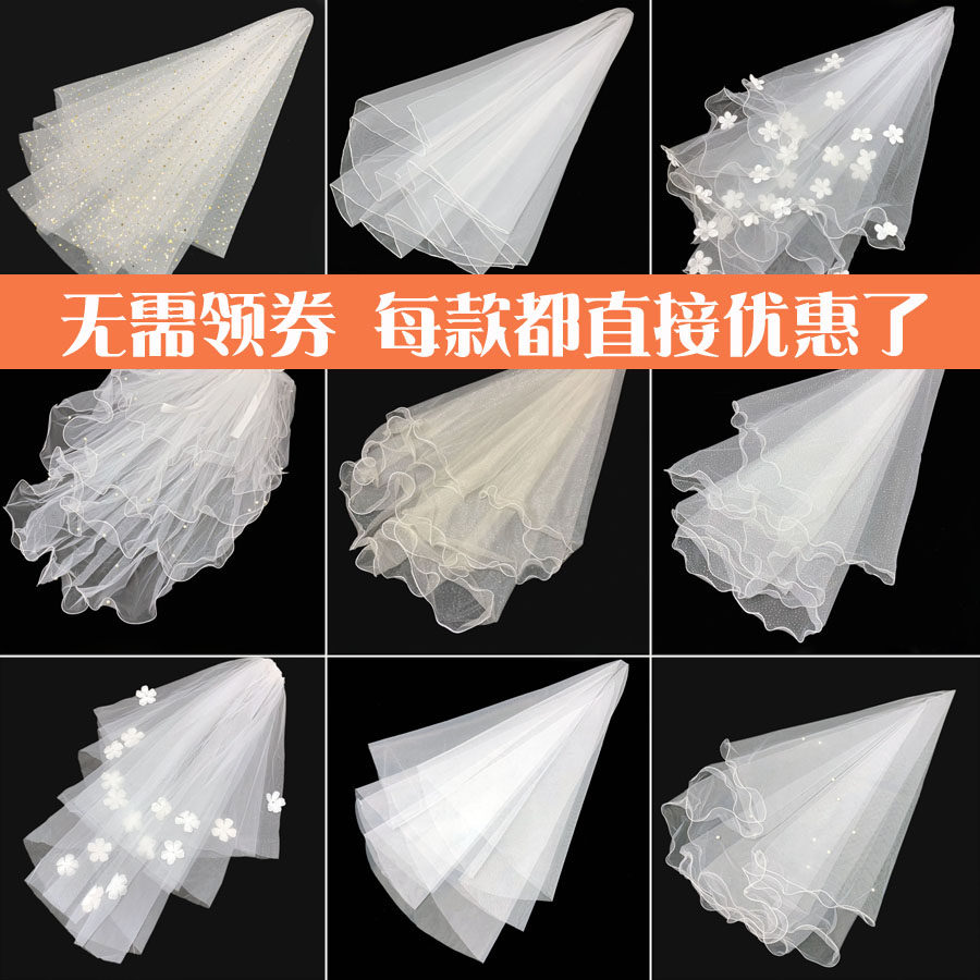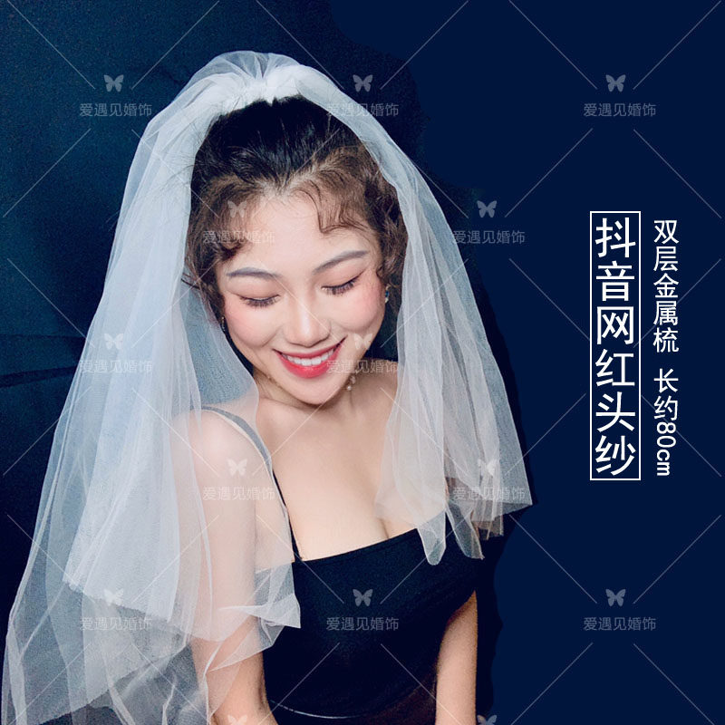 头纱新娘主婚纱头纱头饰超仙森系网红拍照道具复古领证登记黑白色