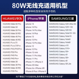 华为原装 pura70无线超级快充智能感应开合80W无线充点烟器车充 车载无线充电器手机支架汽车导航mate60p60pro