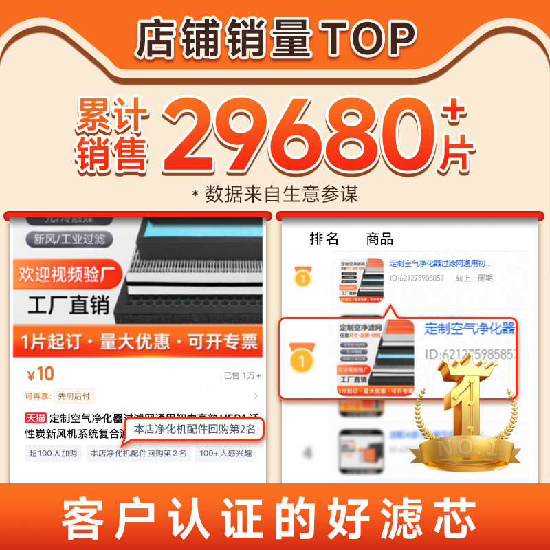 定制空气净化器过滤网通用初中高效HEPA活性炭新风机系统复合滤芯