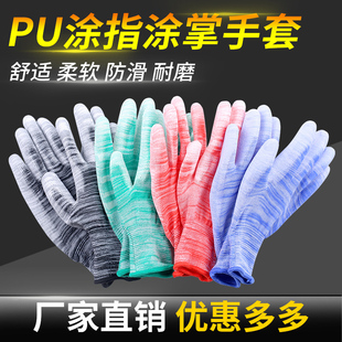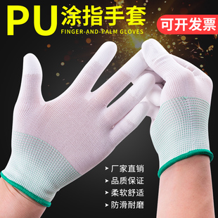 36双薄款 白色尼龙PU涂指手套涂胶浸胶涂掌电子无尘防静电劳保手套