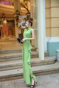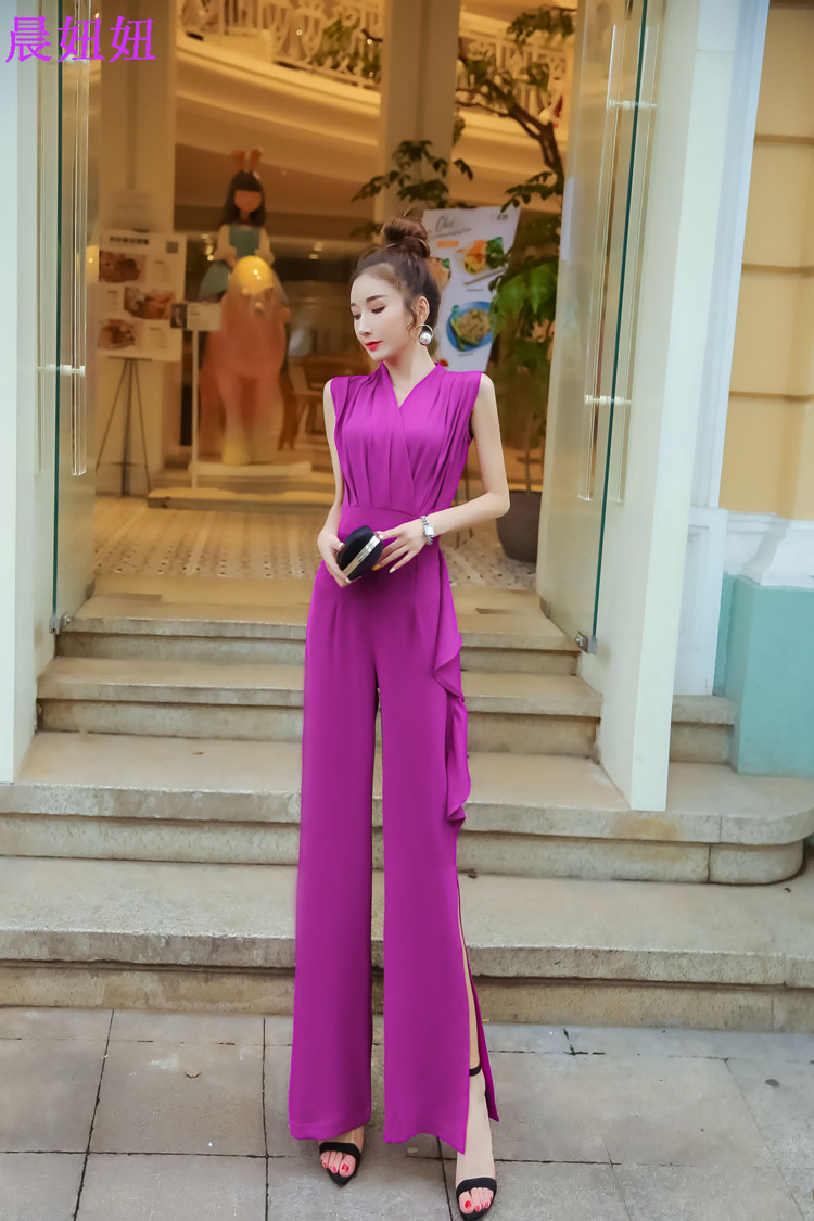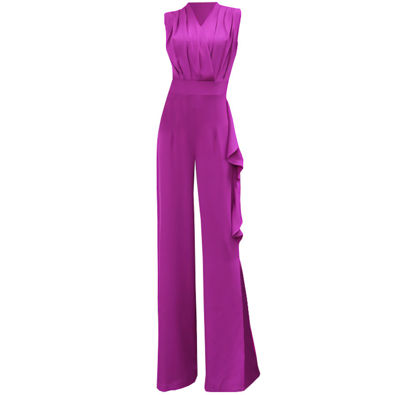 收腰显瘦显高连体裤 欧美时尚 新款 2020夏季 大气不对称荷叶边阔腿裤