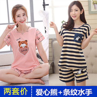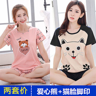 韩版 短袖 短裤 学生睡衣套装 睡衣女夏季 家居服女宽松大码 女 纯棉