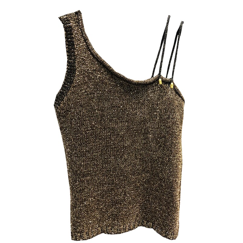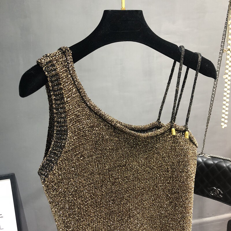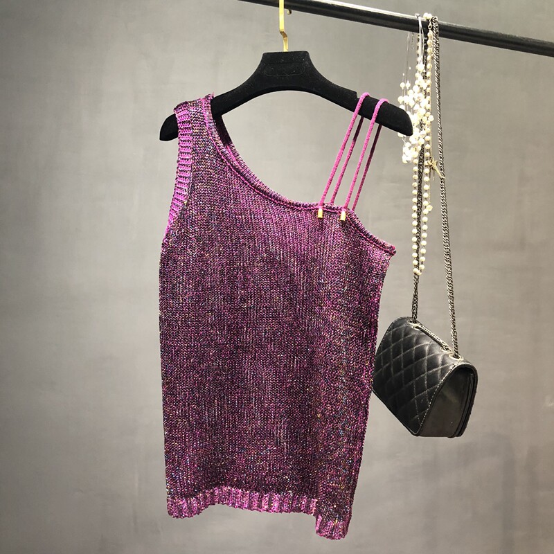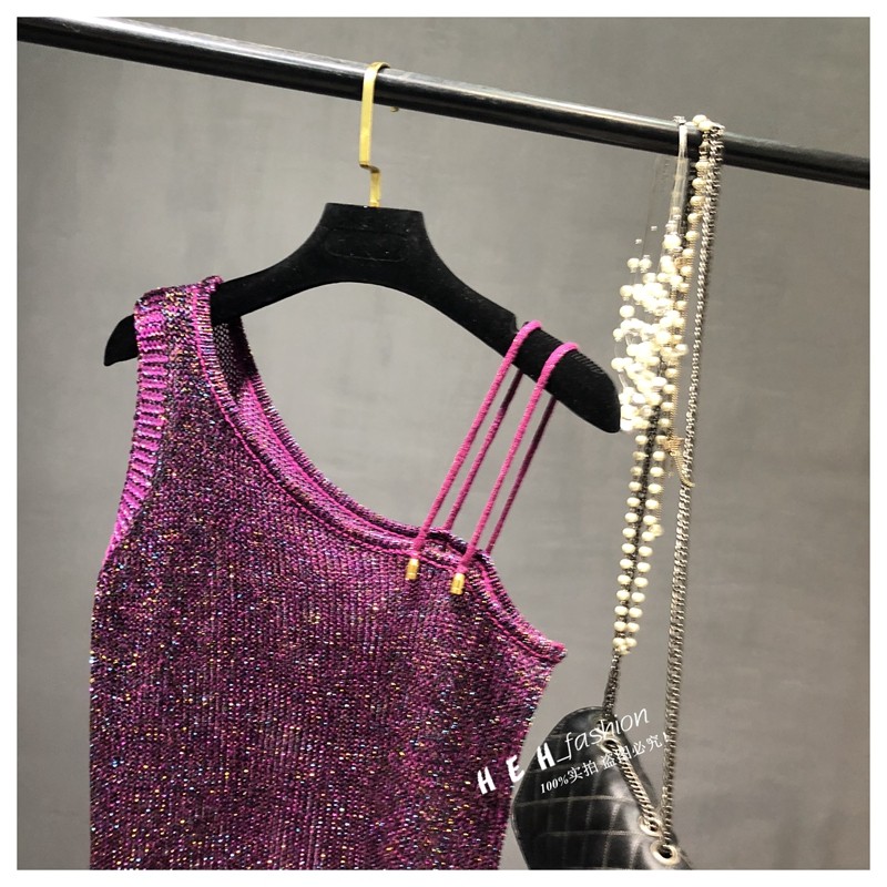 背心亮丝宽松显瘦闪闪ins吊带上衣女 性感斜肩百搭针织衫 夏季 新款