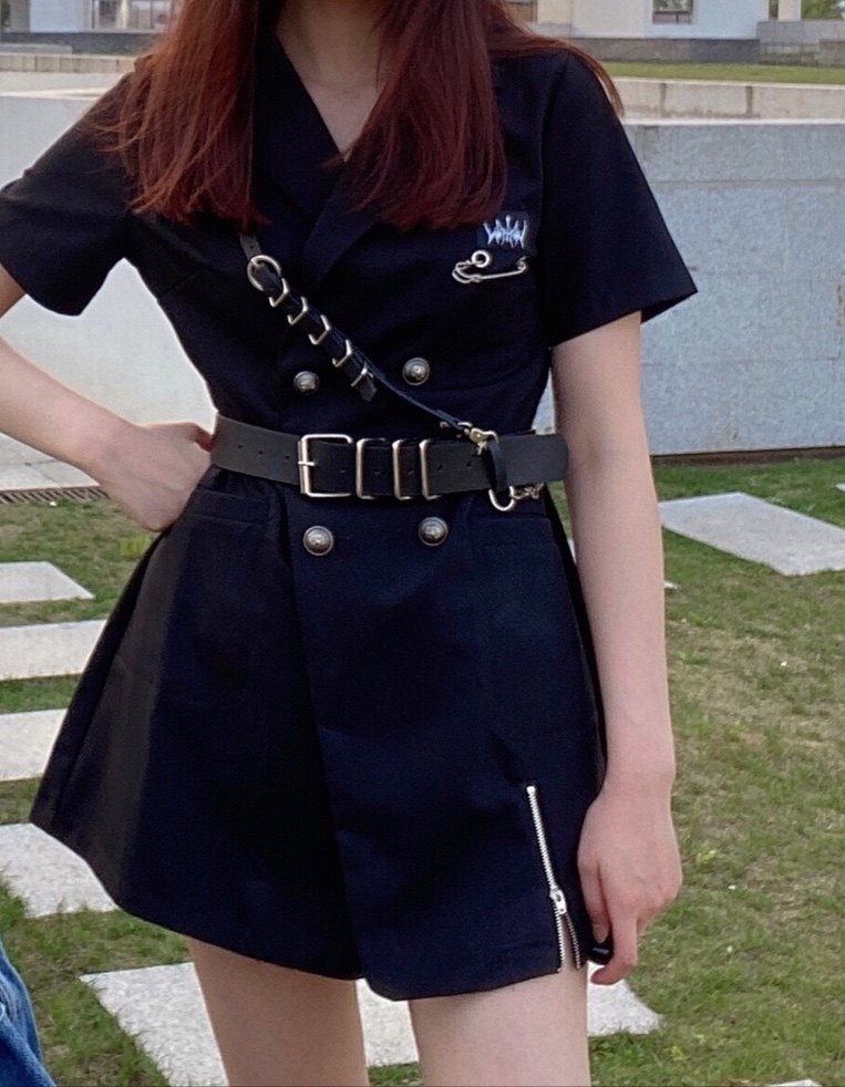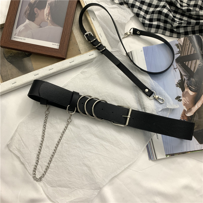 单肩带腰带百搭装 风配牛仔裤 饰黑色皮带背带可拆卸女 军装 2025新款