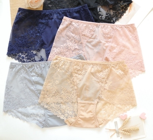 抗菌加长裆中腰蕾丝女生四角裤 都市丽人平角内裤 女士纯棉2025新款