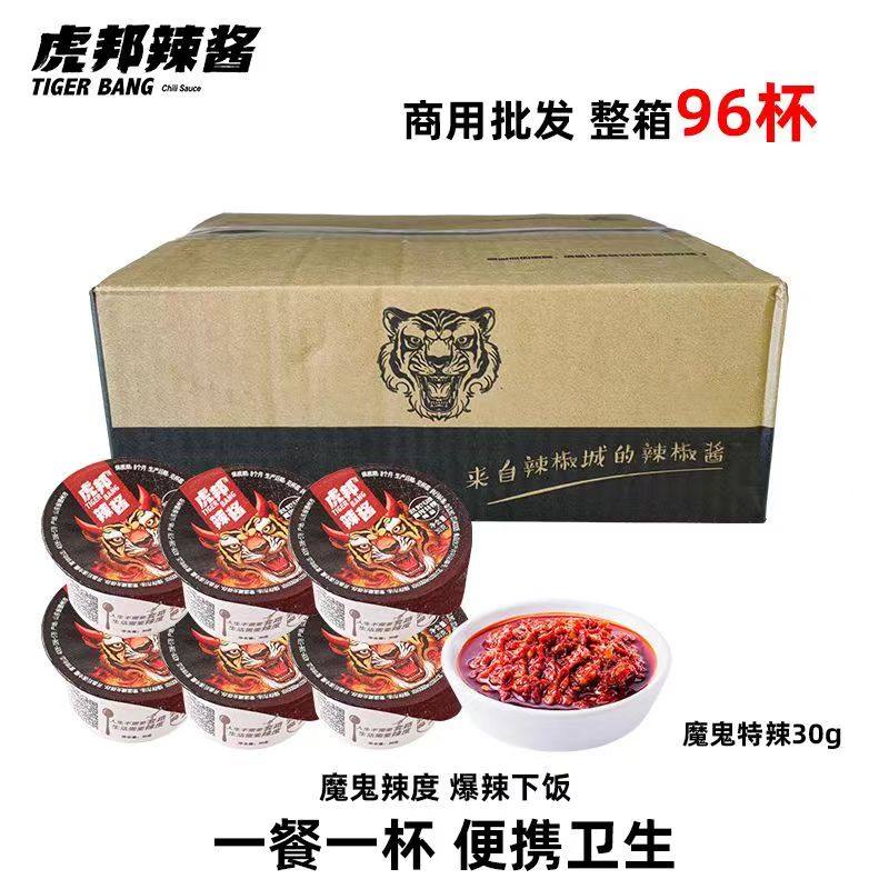 虎邦辣酱外卖商用鲁西整箱30g 魔鬼特辣虎榜招牌牛肉酱 96盒便携装