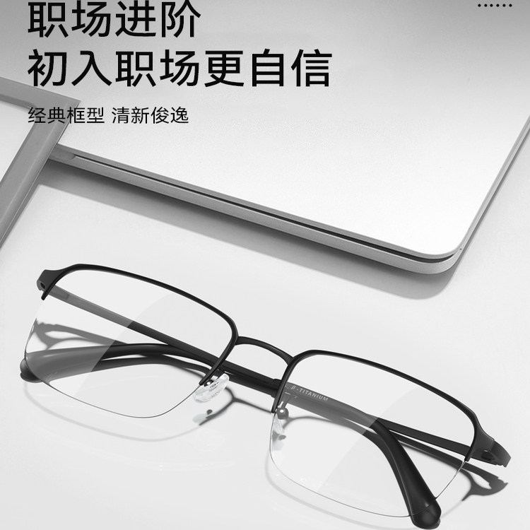 超轻纯钛半框近视眼镜框男款 可配度数镜片专业网上配防蓝光眼睛架