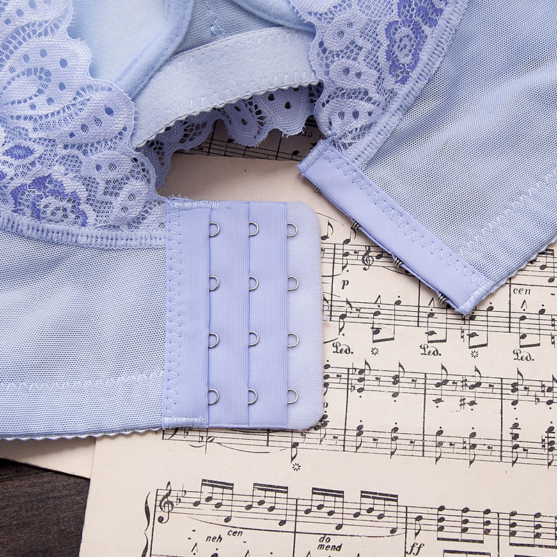 蕾丝文胸无钢圈内衣女薄收副乳调整型无磁小胸聚拢背心式 胸罩套装