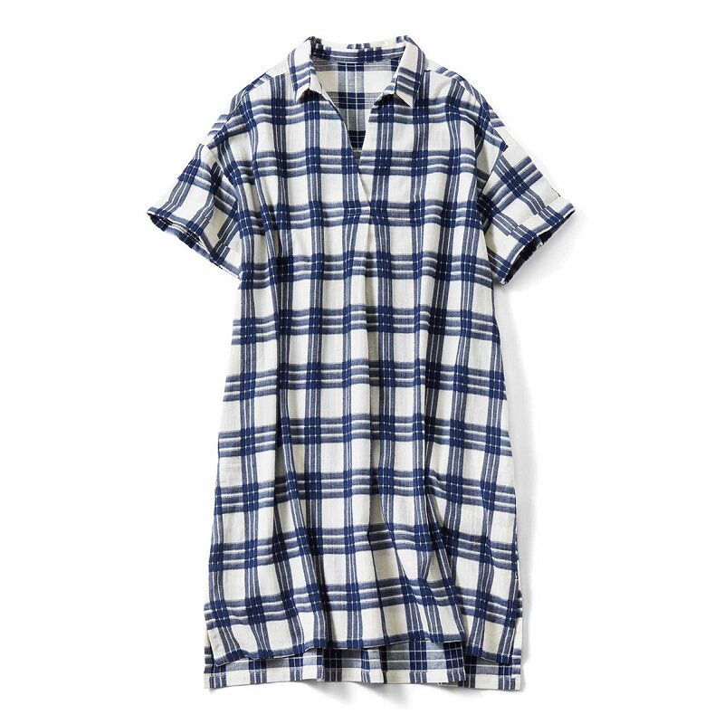 宽松a版 女士衬衫 格子纯棉2020年新款 短袖 外贸出口日单长上衣 夏季
