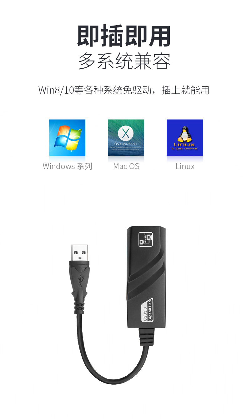 USB3.0有线网卡1000M千兆以太网RJ45TYPE SwitchAX88179RTL8153