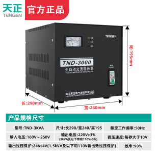 天正TND 单相交流220V超低压 3KVA全自动稳压器3000W空调电脑冰箱