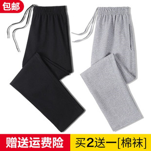 拉链加绒卫裤 男士 春秋休闲束脚纯棉加肥加大码 直筒薄款 宽松 运动裤