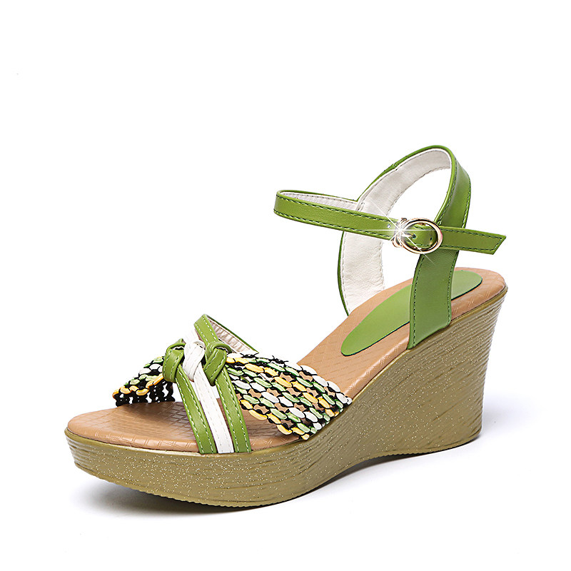 坡跟真皮高跟厚底松糕草编女士凉鞋 女鞋 百搭外穿 女凉鞋 2025夏新款