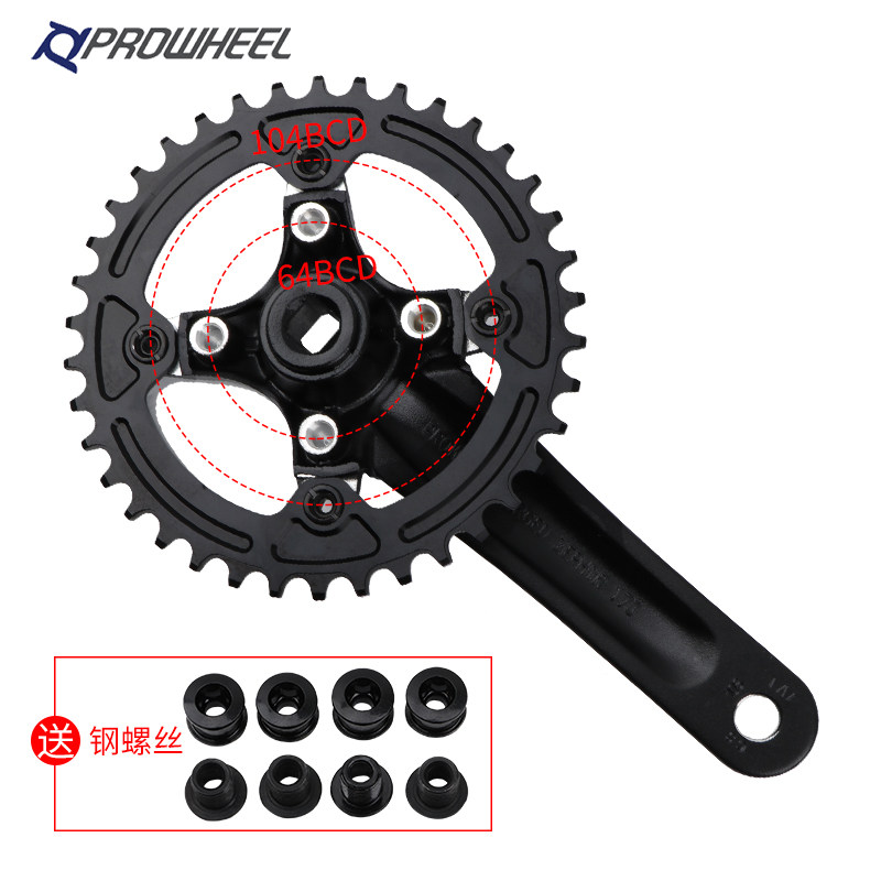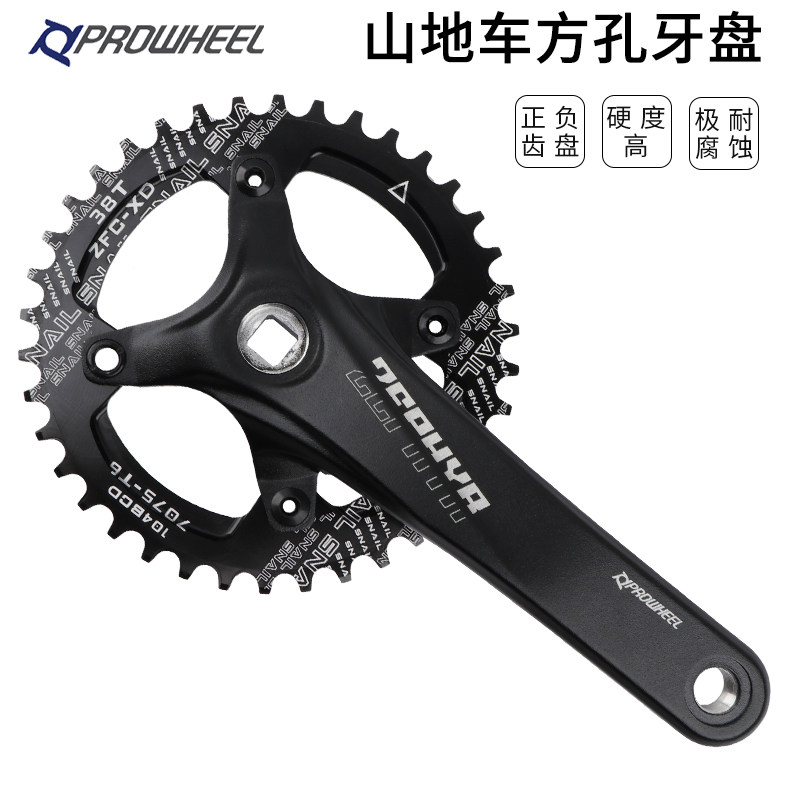 Prowheel浩盟方孔曲柄自行车正负齿牙盘单盘104BCD山地车双盘曲柄