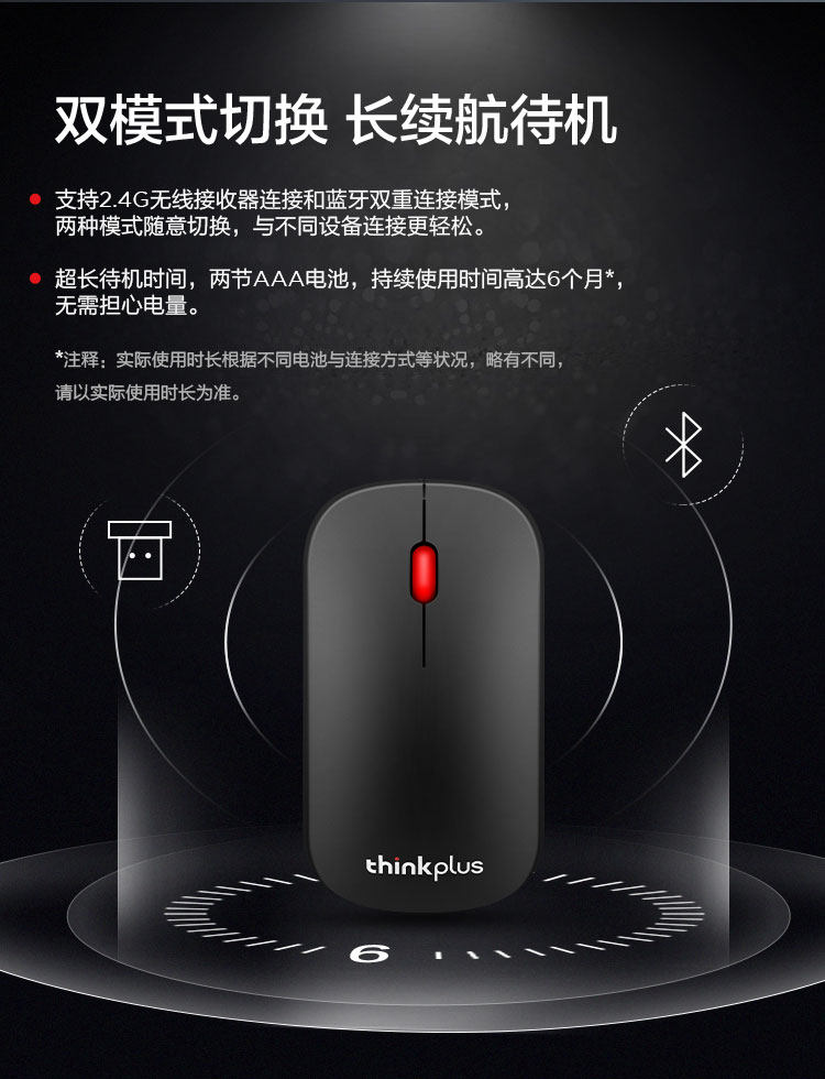 联想thinkplus无线蓝牙鼠标轻薄便携静音双模USB鼠标4Y50Q90262