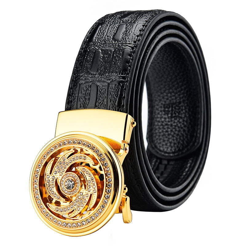 皮带男真皮潮年轻人休闲时来运转正男袋鼠自动扣百搭商务中国腰带