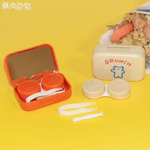 可爱卡通美瞳盒便携收纳伴侣带镜子摘取工具隐形眼镜护理收纳盒