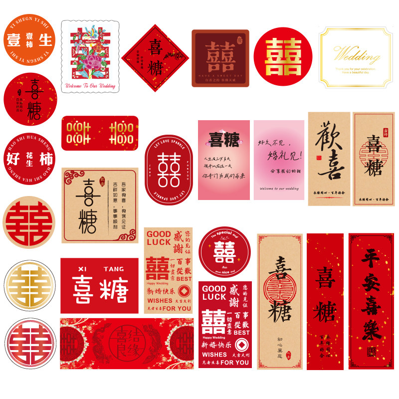 不干胶 我们结婚啦 百年好合 喜糖 100贴 喜字 婚礼贴纸定制 贴纸
