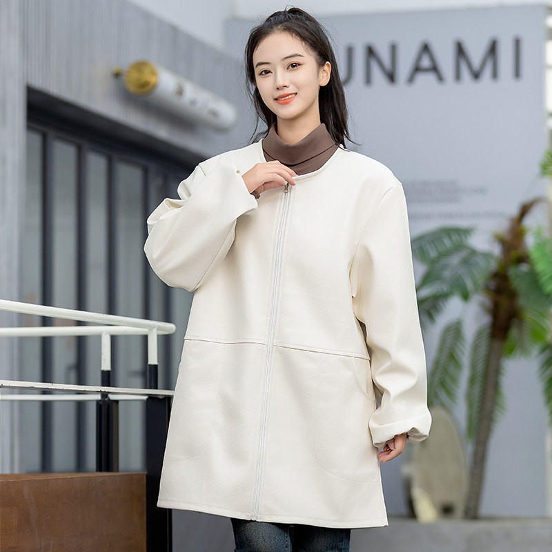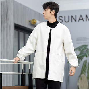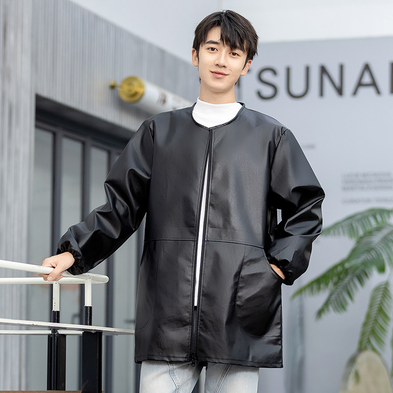羽绒服罩衣大人冬pu皮革防水大褂防油软皮家用围裙护衣工作服男女