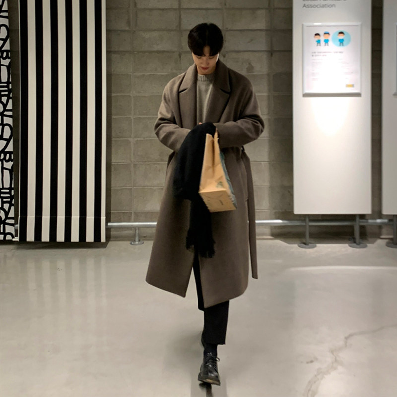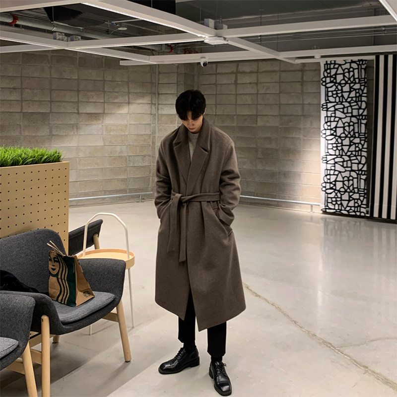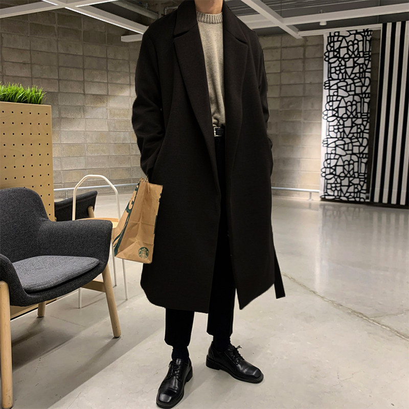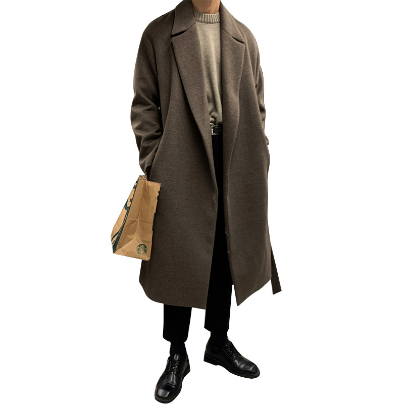 过膝无羊绒呢子风衣外套韩版 毛呢大衣男中长款 宽松落肩 新款 秋冬季