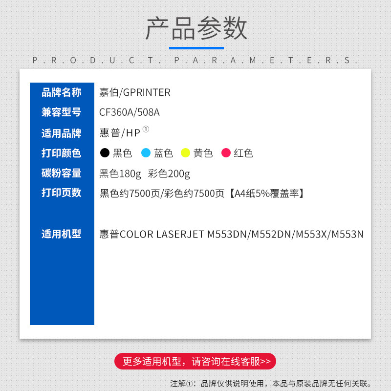 M552DN打印机墨盒m577z 嘉伯适用惠普CF360A硒鼓HP508A M553X M553N m577f打印机m577dn彩色 M553DN