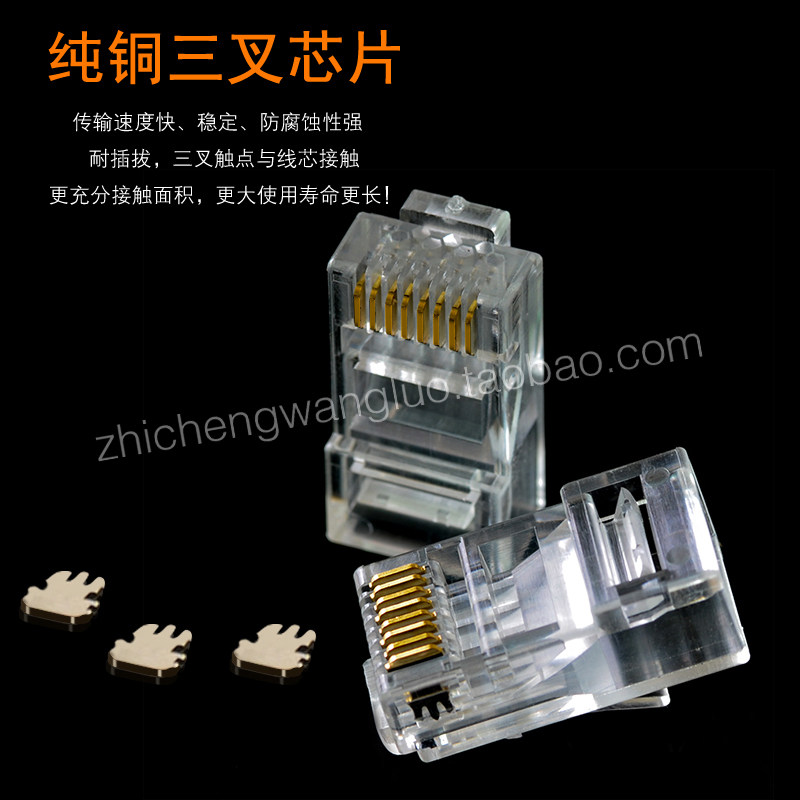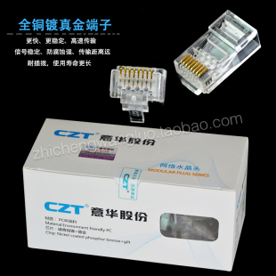 意华六类水晶头8芯镀金RJ45连接头纯铜千兆电脑网络水晶头 包邮