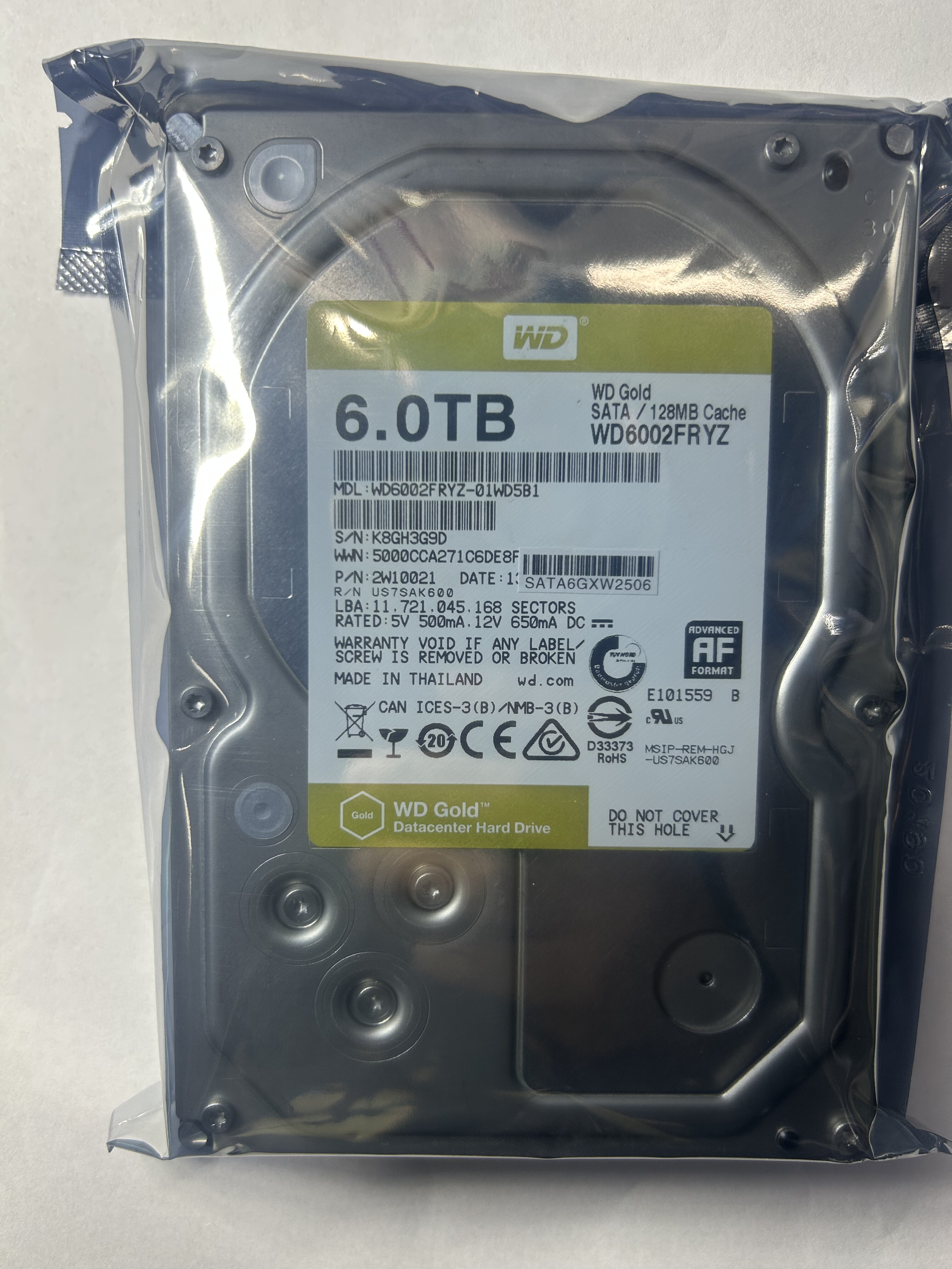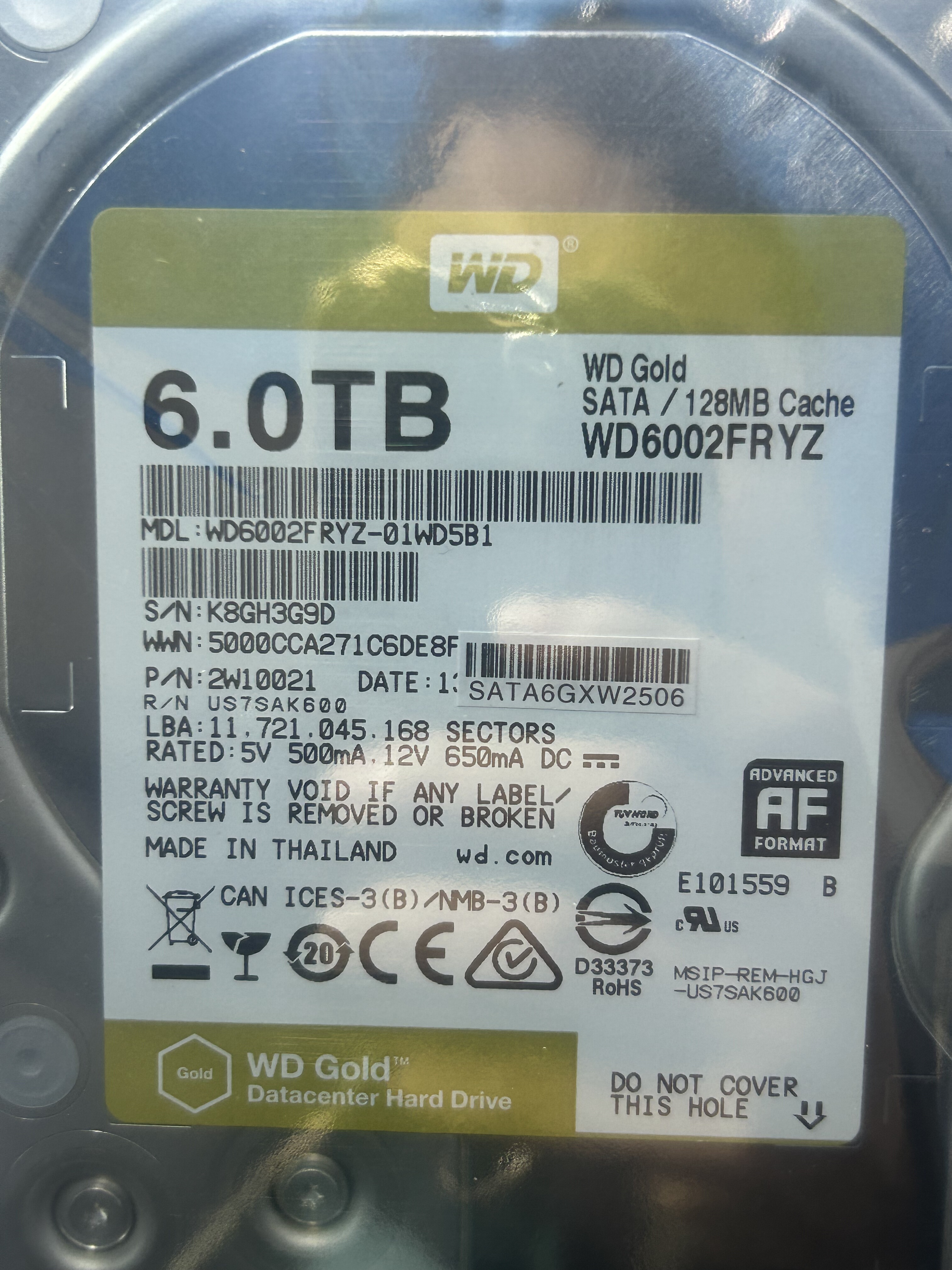 西数6T金盘WD6002FRYZ西部数据6T监控硬盘企业级硬盘金盘机械盘