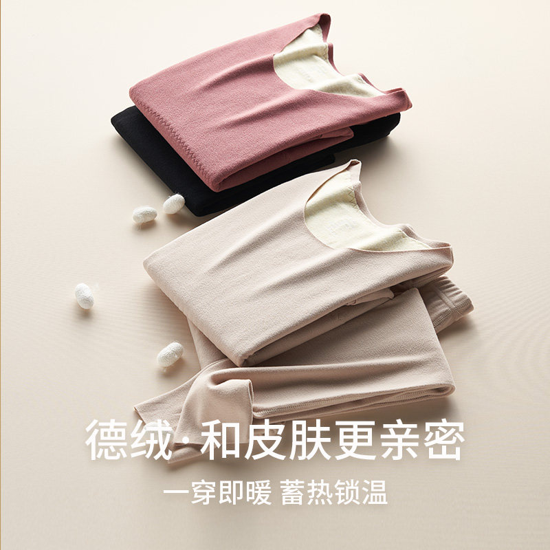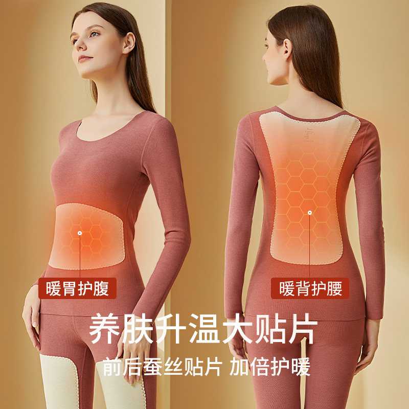 t恤蚕丝贴片秋衣秋裤 德绒无痕加绒打底衫 长袖 保暖内衣套装 女冬季