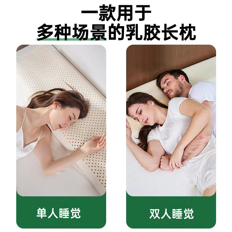 天然乳胶长枕头双人枕1.2m1.5米 夫妻成人橡胶枕 一体枕芯情侣长款