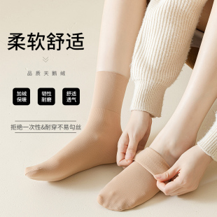 梦娜短丝袜女冬款 加厚秋冬肉色天鹅绒短袜加绒中筒袜黑色短筒袜子