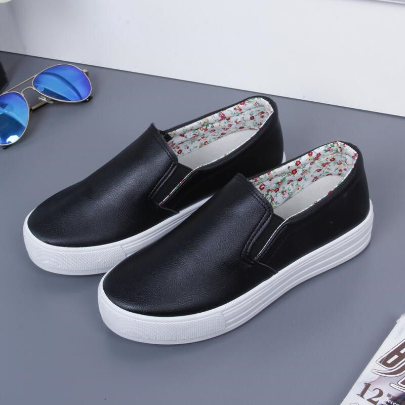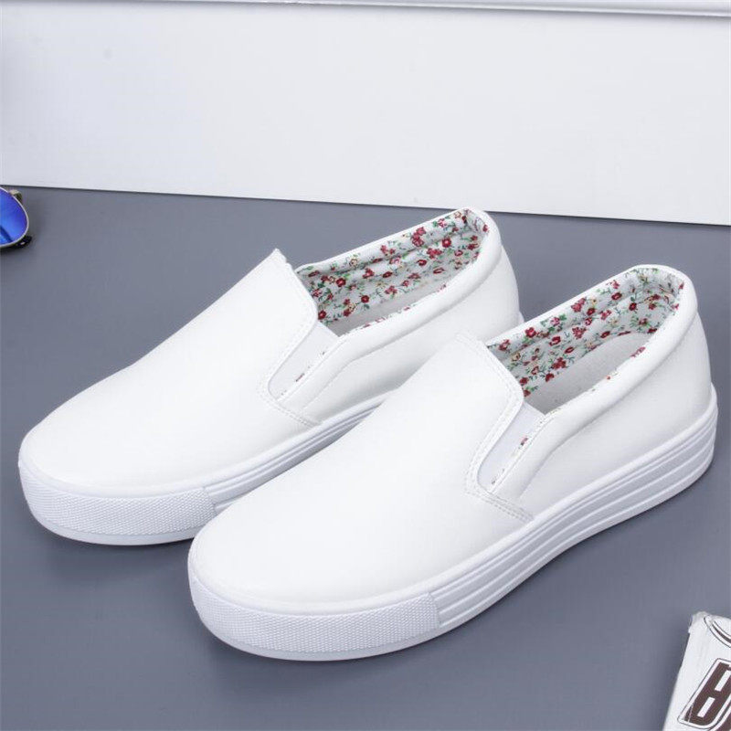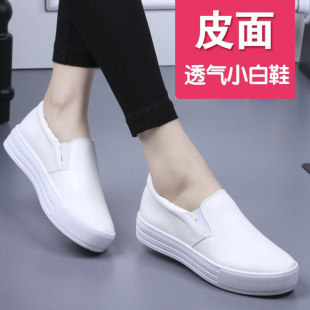 百搭透气平底学生板鞋 厚底皮面小白鞋 休闲鞋 女韩版 女秋白色帆布鞋