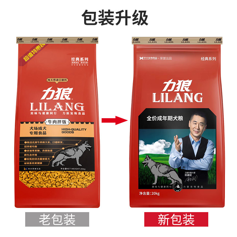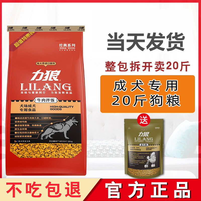 力狼狗粮20斤成犬粮10KG牛肉拌饭藏獒德牧萨摩金毛哈士奇全国 包邮